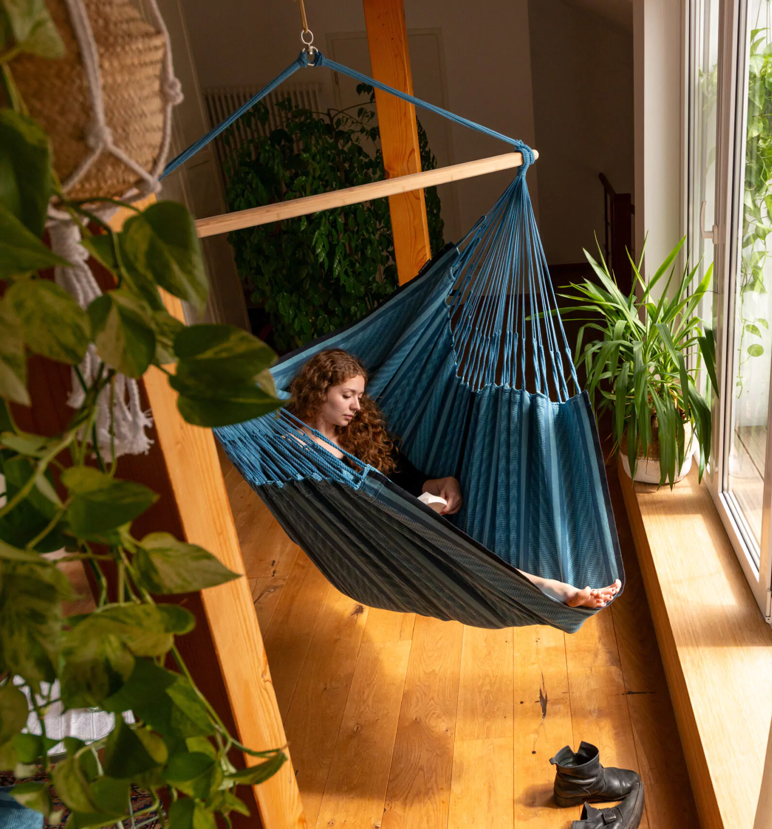 Ein Hängesessel kann dein bester Freund während der Abi-Prüfungszeit sein, besonders wenn es darum geht, den Stress abzubauen. Der perfekte Ort für dein Hängesessel befindet sich im Freien, wo du die frische Luft und die beruhigenden Klänge der Natur genießen kannst. Ob in deinem Garten oder auf dem Balkon – ein Hängesessel bietet dir einen Rückzugsort, der zum Entspannen einlädt. Du kannst sie einfach an einem Hängesesselgestell befestigen oder an einem Ast aufhängen. In Kombination mit einer bequemen Hängematte wird das Entspannen noch angenehmer. Auf Hängematten.Boutique findest du eine große Auswahl an Hängesessel und Hängematten in verschiedenen Preiskategorien und Materialien. Egal, ob du eine klassische Baumwollhängematte/ Hängesessel oder eine moderne Variante aus synthetischen Stoffen suchst. Genieße die Zeit in deinem Hängesessel, um deinen Kopf frei zu bekommen und neue Energie zu tanken!